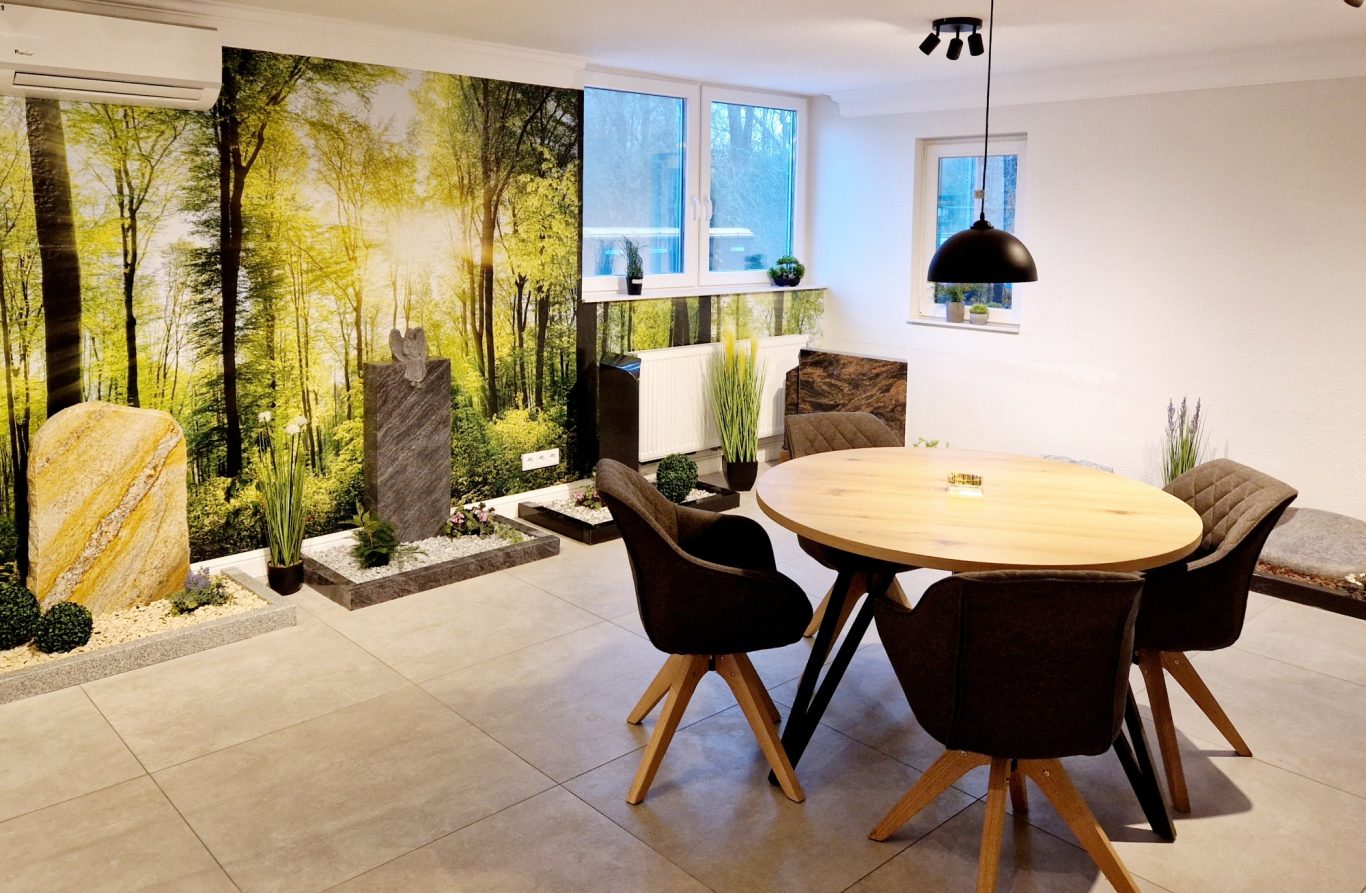Mit unserem Unternehmens-Motto "vertrauensvoll miteinander" wollen wir die Wünsche unserer Kunden in den Mittelpunkt stellen. In unserem liebevoll eingerichtetem Beratungsraum entwerfen wir gemeinsam wundervolle Grabsteine,