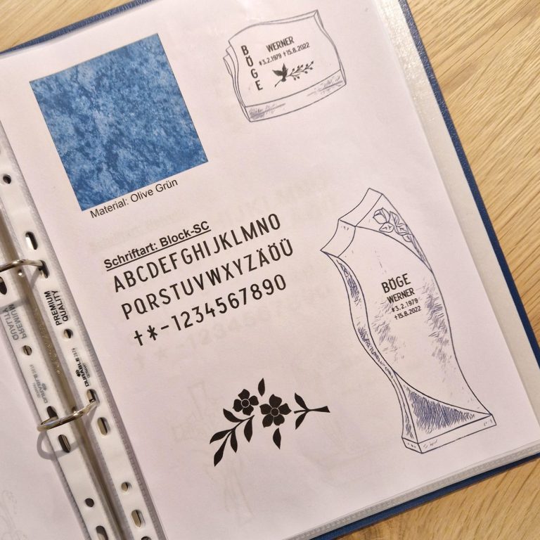 Lassen Sie sich von unseren Schriftenkatalog und Mustergräbern inspirieren